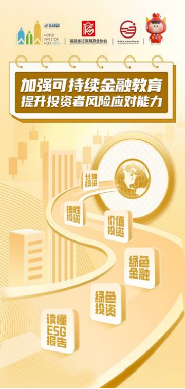世界投资者周(Word Investor Week)是由国际证券委员会组织牵头组织的全球性投资者教育和保护活动。“2023年世界投资者周”活动时间自2023年10月23日起至27日,活动围绕“投资者风险应对能力”和“可持续金融”两大主题,旨在增强投资者风险防范意识,传递理性投资、价值投资、长期投资理念。