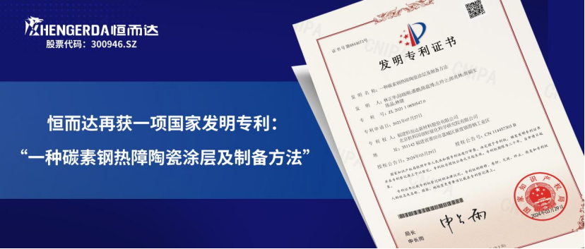 喜讯丨恒而达再添硕果,荣获“一种碳素钢热障陶瓷涂层及制备方法”国家发明专利!