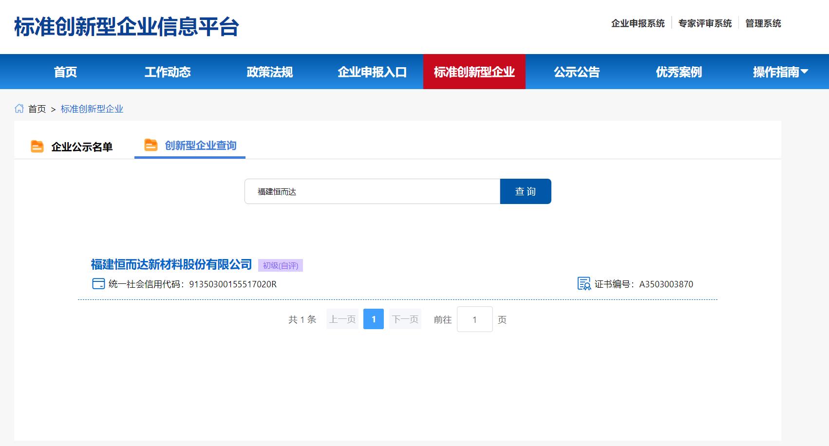 近日,由国家市场监督管理总局、国家标准化管理委员会主管的标准创新型企业信息平台公示申报结果,恒而达顺利通过“标准创新型企业(初级)”资质认定,荣获“标准创新型企业”称号!