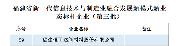 喜讯!恒而达入选“福建省新一代信息技术与制造业融合发展新模式新业态标杆企业”