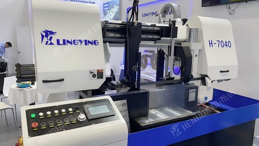 Among this year’s exhibited products, the horizontal high-speed bandsaw machine (model: H-6045NC) made its debut. Designed to pair with ground-tooth and carbide band saw blades for metal cutting, this intelligent CNC sawing machine is equipped with a PLC programmable control system and an innovative intelligent sawing module. By selecting the material type in the system interface, the machine automatically adjusts cutting feed, blade speed, and other parameters to achieve optimal cutting efficiency while greatly extending blade life. All machine operations are controlled via a PLC touchscreen with digital display, allowing seamless switching between automatic and manual modes.