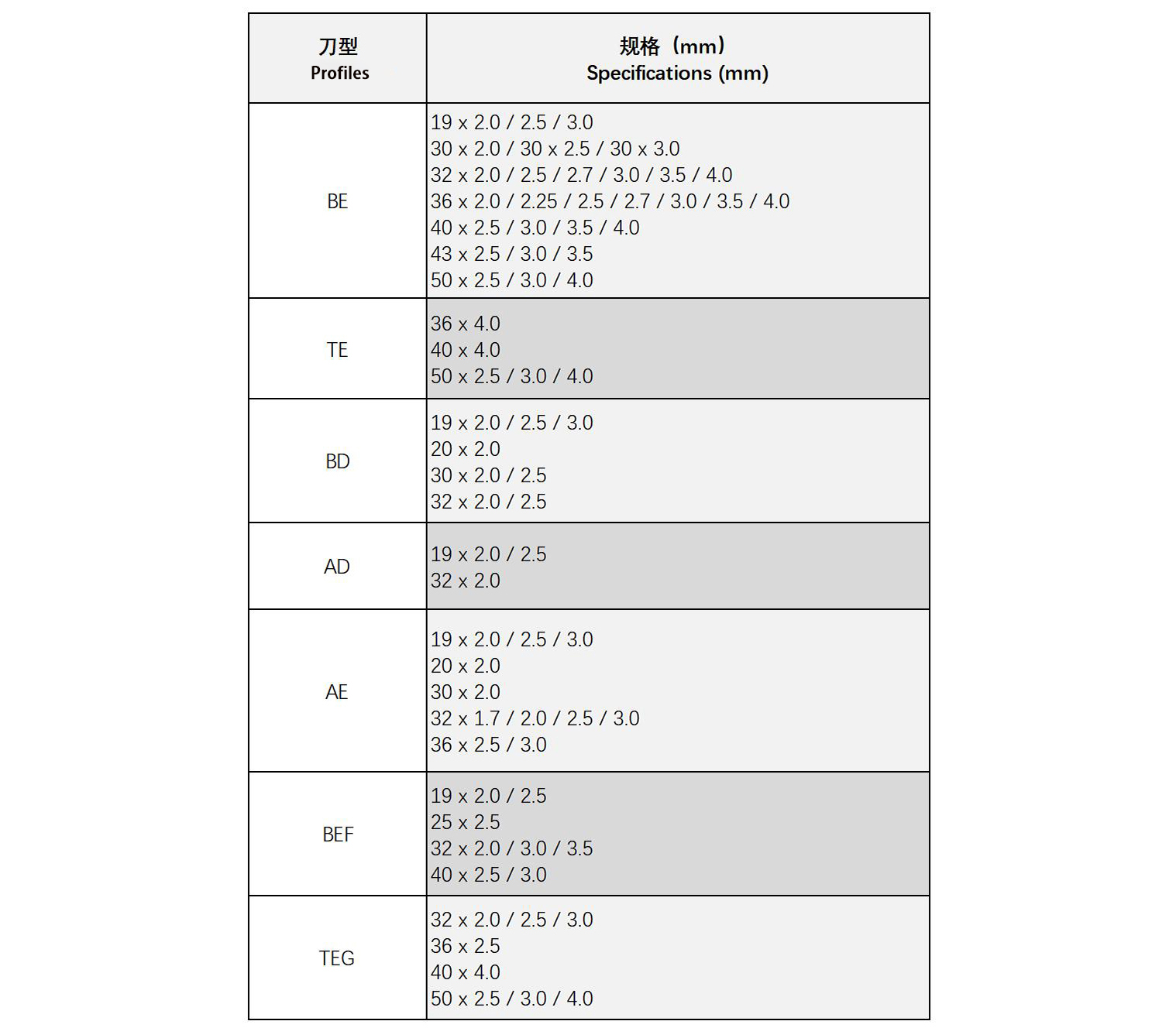 Hengerda offers a wide range of clicking die steel profiles such as BE, BD, AE, TEG, TE, BEF, BFG, BES, AD, etc. The blades have features of different edge and body hardness, excellent bendability, and a long lifetime. For more details, please refer to the list below. Please don't hesitate to get in touch with our sales representatives for customized orders.