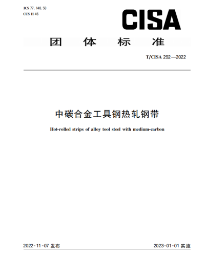 近日,由我司参与起草的《中碳合金工具钢热轧钢带》(编号:T/CISA29-2022)行业标准正式出版,该标准经专业标准化技术专家审定通过,并经全国钢标准化技术委员会审查,2023年1月1日便已开始实施。