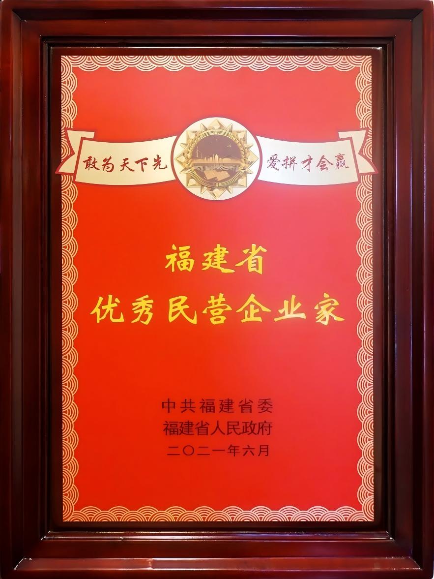 热烈庆贺董事长林正华荣获“福建省优秀民营企业家”称号